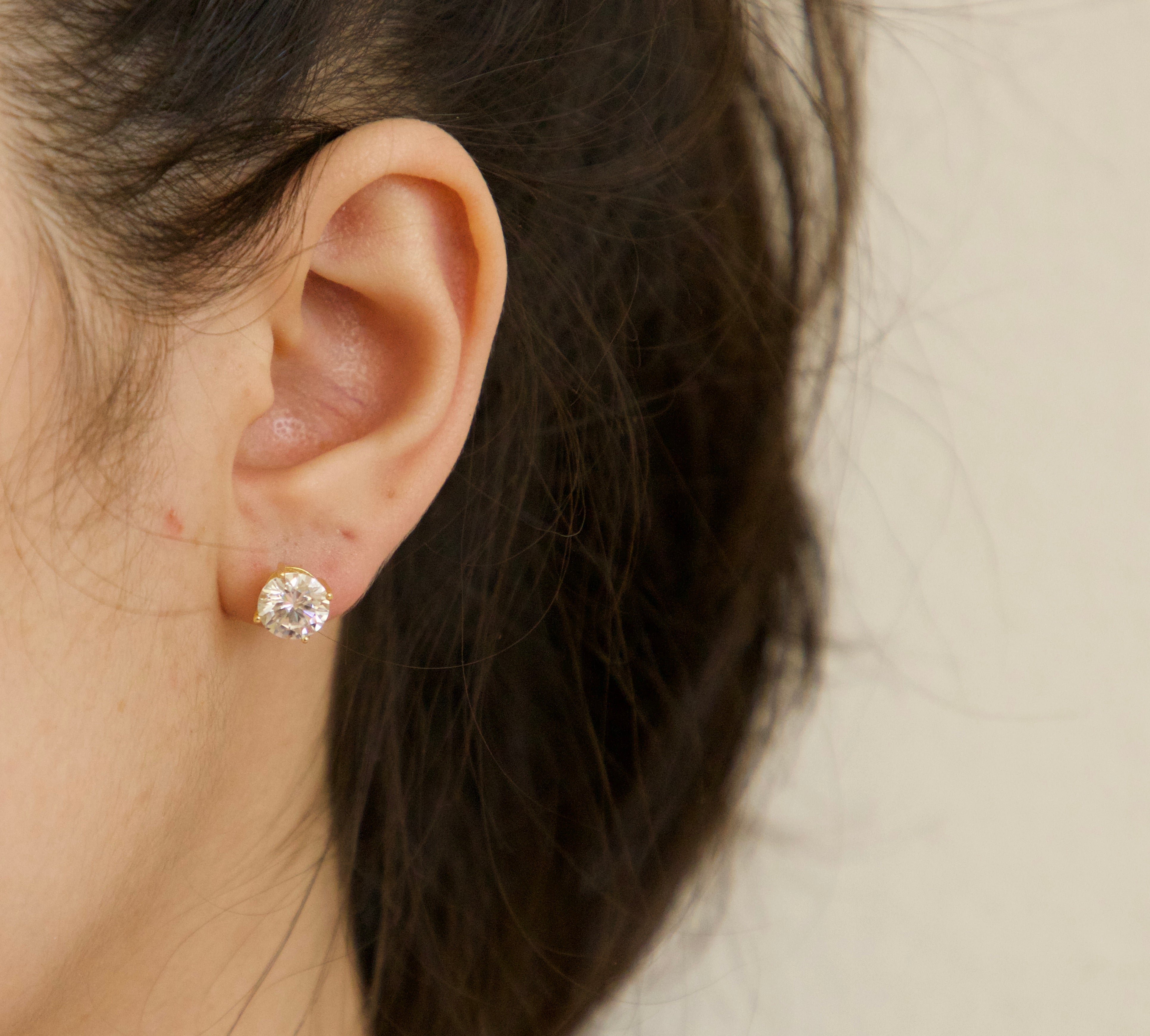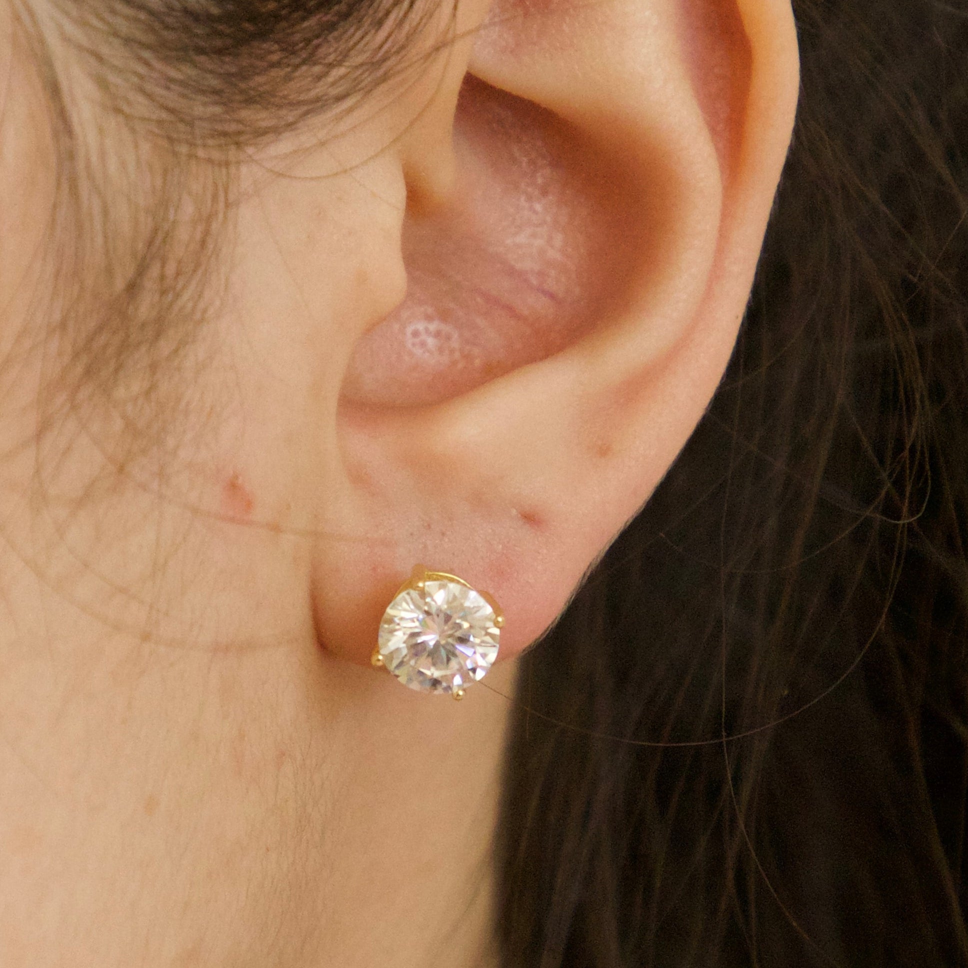 Experience the brilliance of Moissanite. These classic solitaire studs feature hand-selected Moissanite stones, known for having more "fire" and sparkle than a traditional diamond. These earrings are the gold standard for everyday luxury.