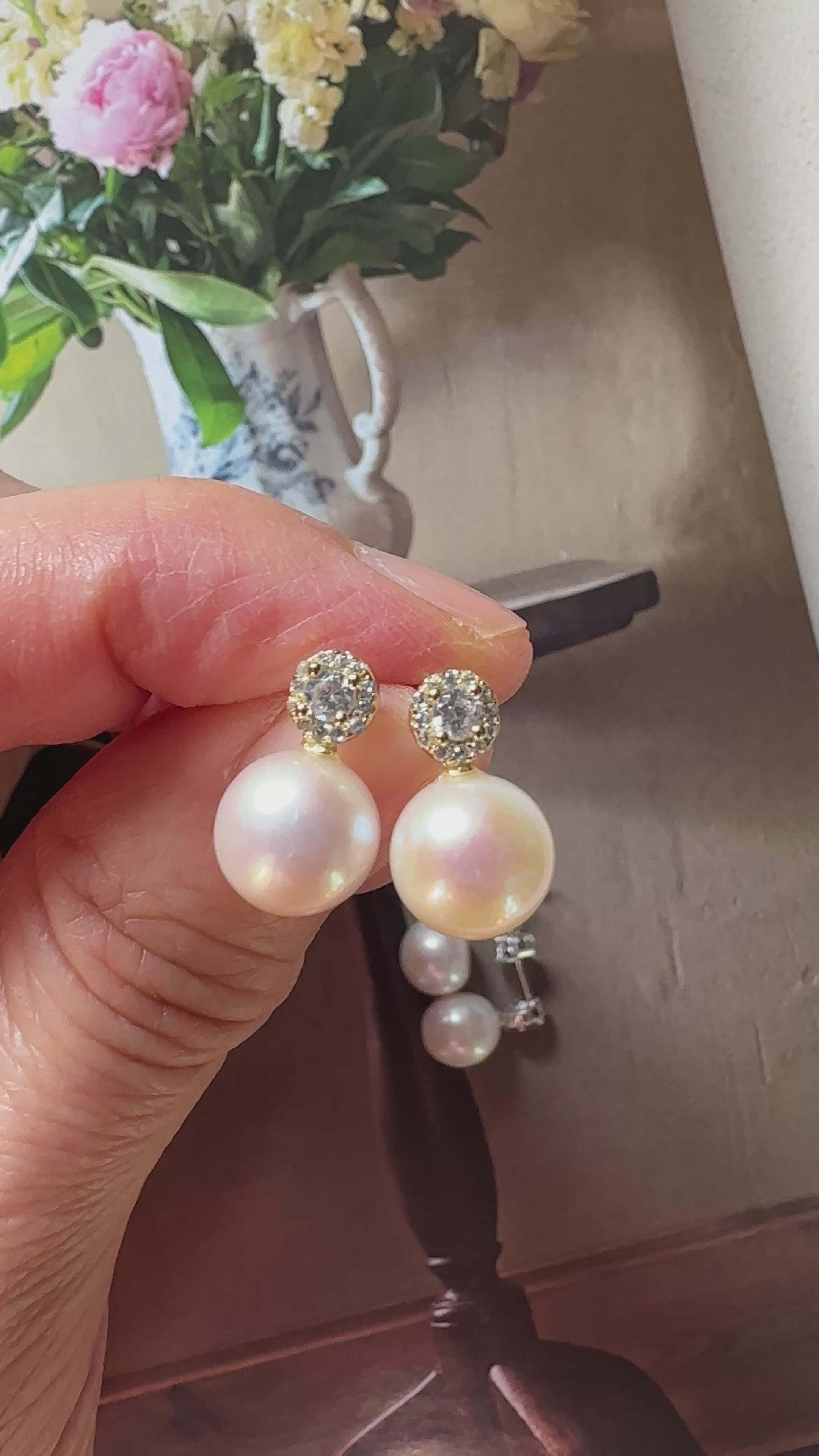 Classic elegance reimagined for the modern romantic. These stunning earrings feature hand-selected Freshwater Pearls suspended from a brilliant Cubic Zirconia halo stud, creating a timeless silhouette that captures the light with every turn of the head.