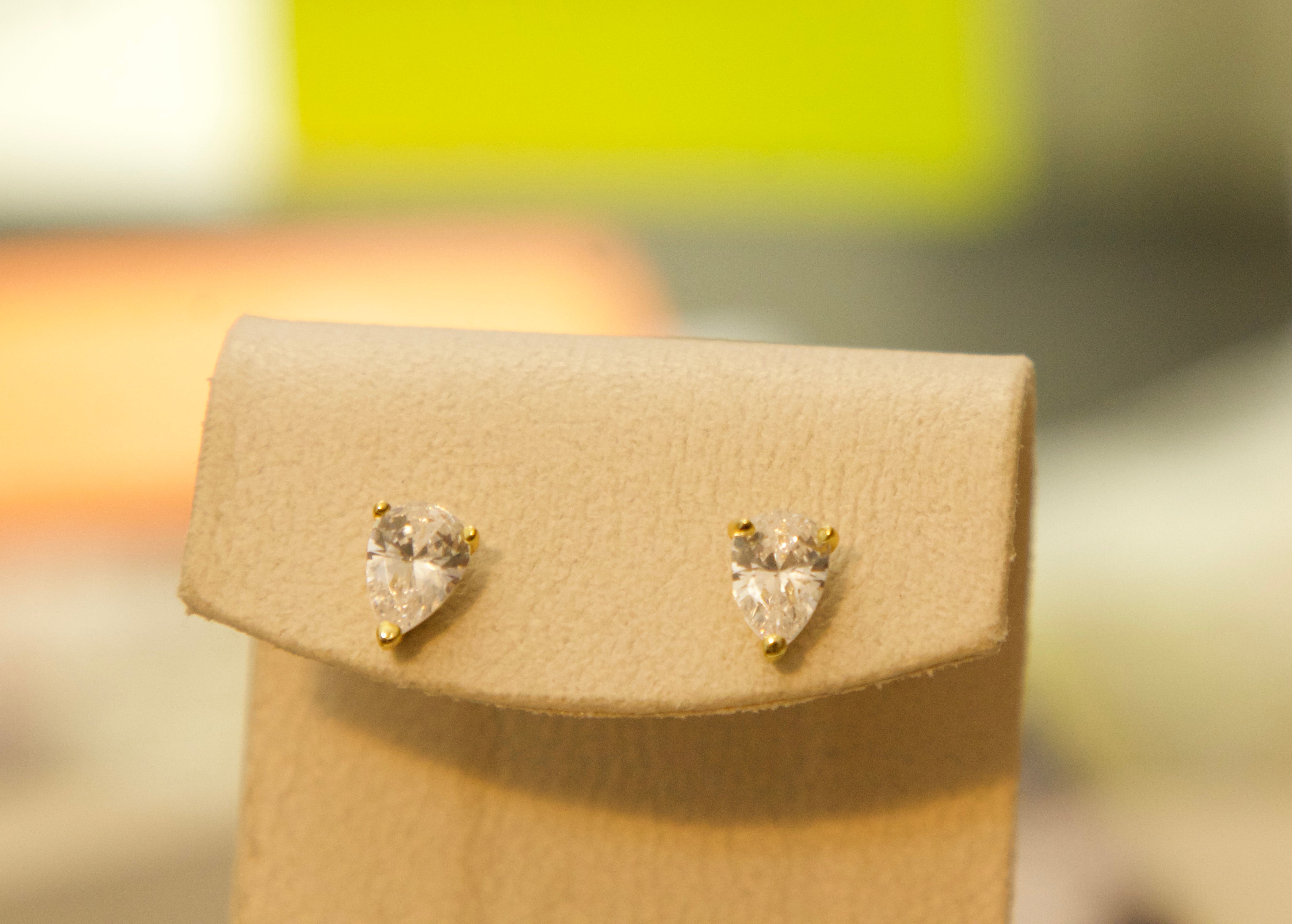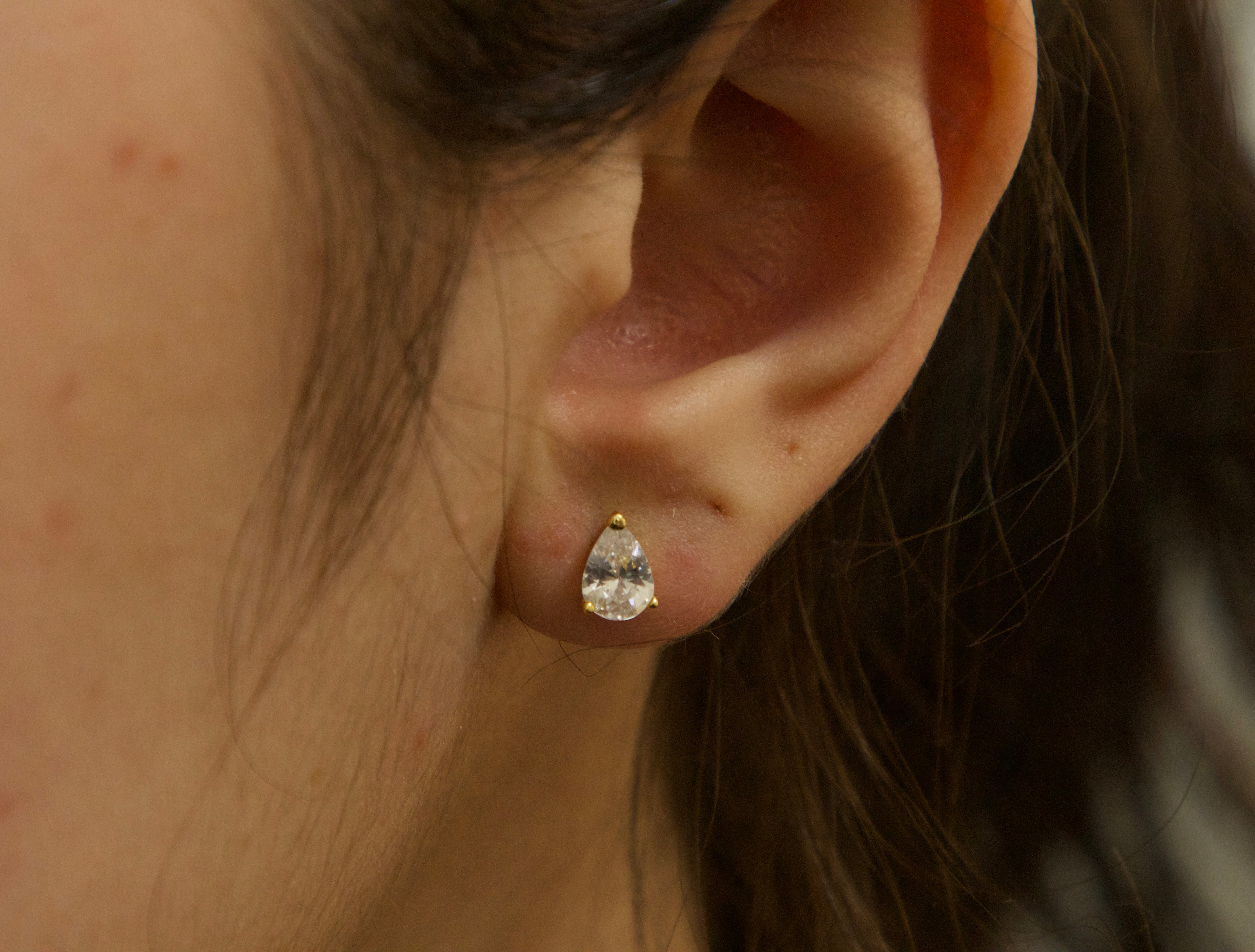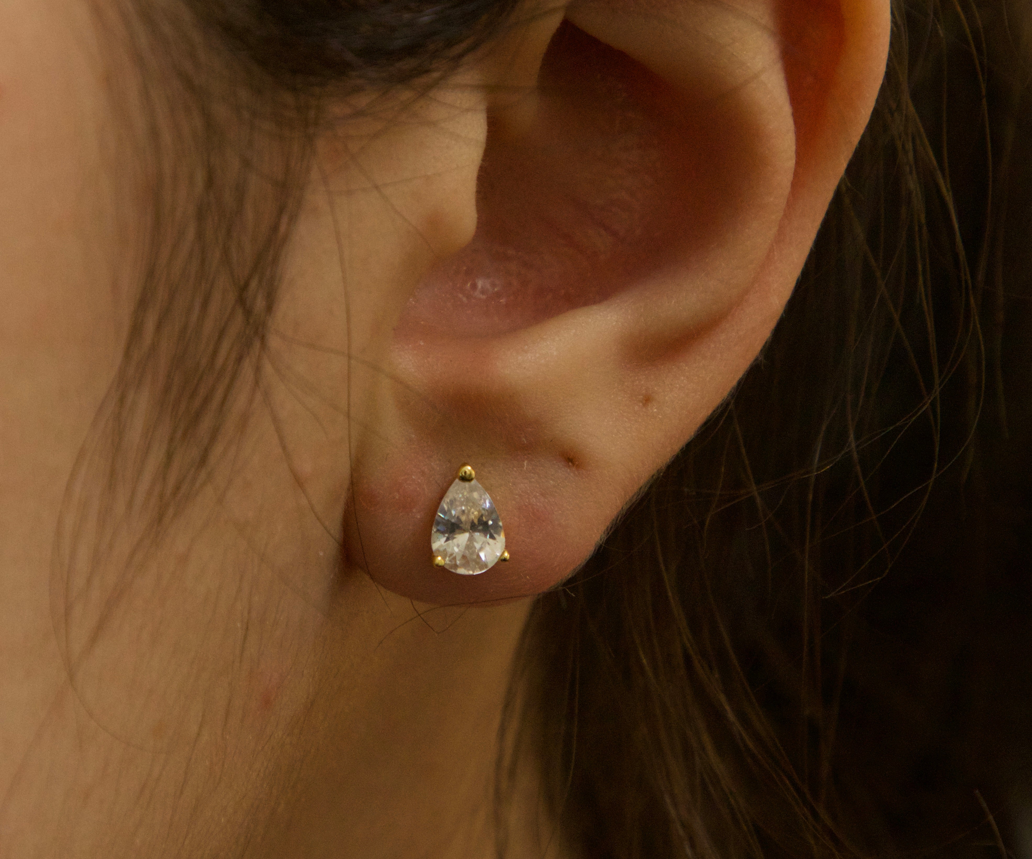 Stone: Premium Grade Pear-Cut Cubic Zirconia (CZ) for diamond-like fire.