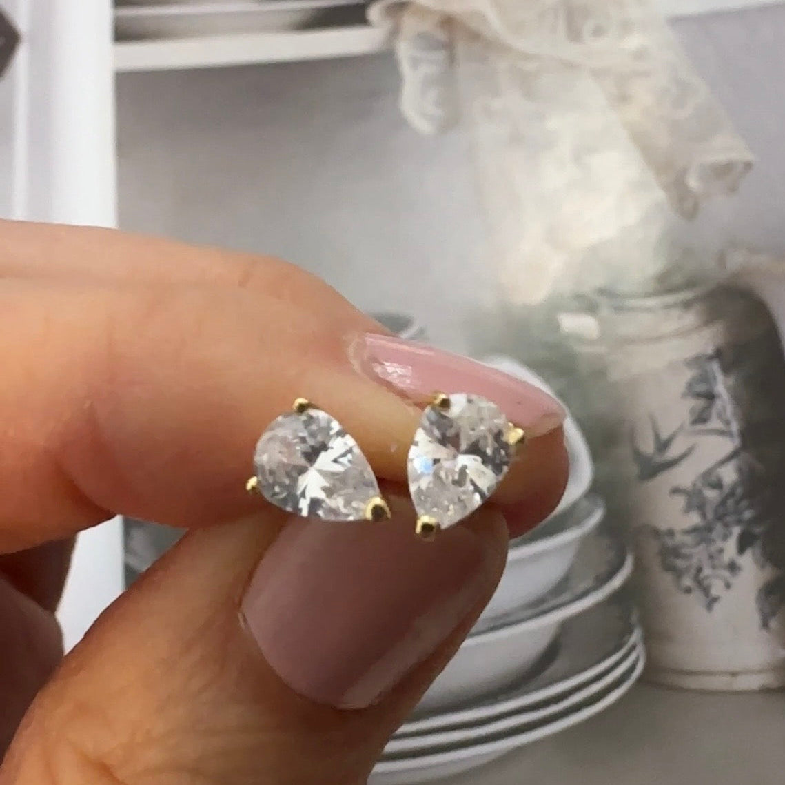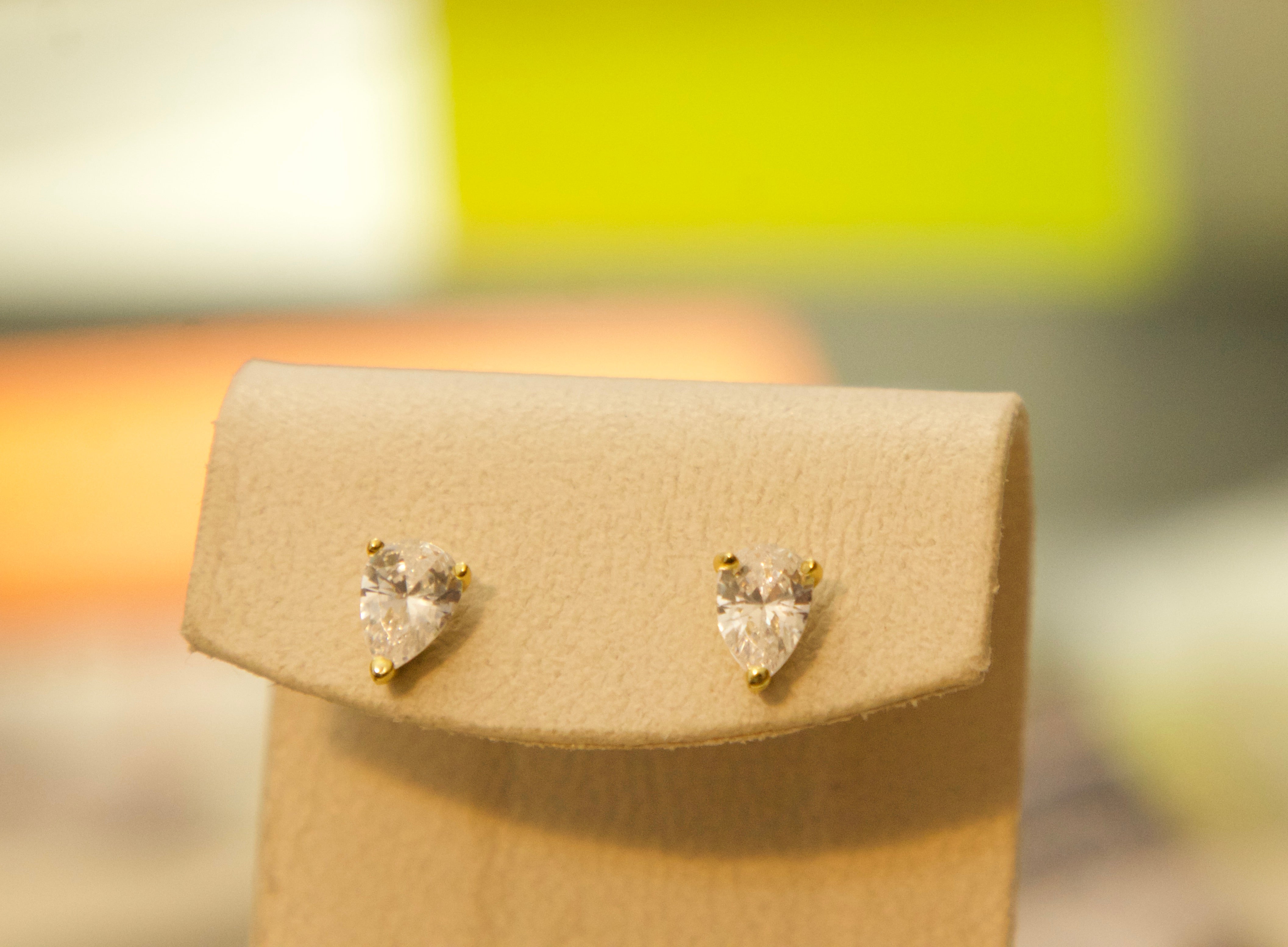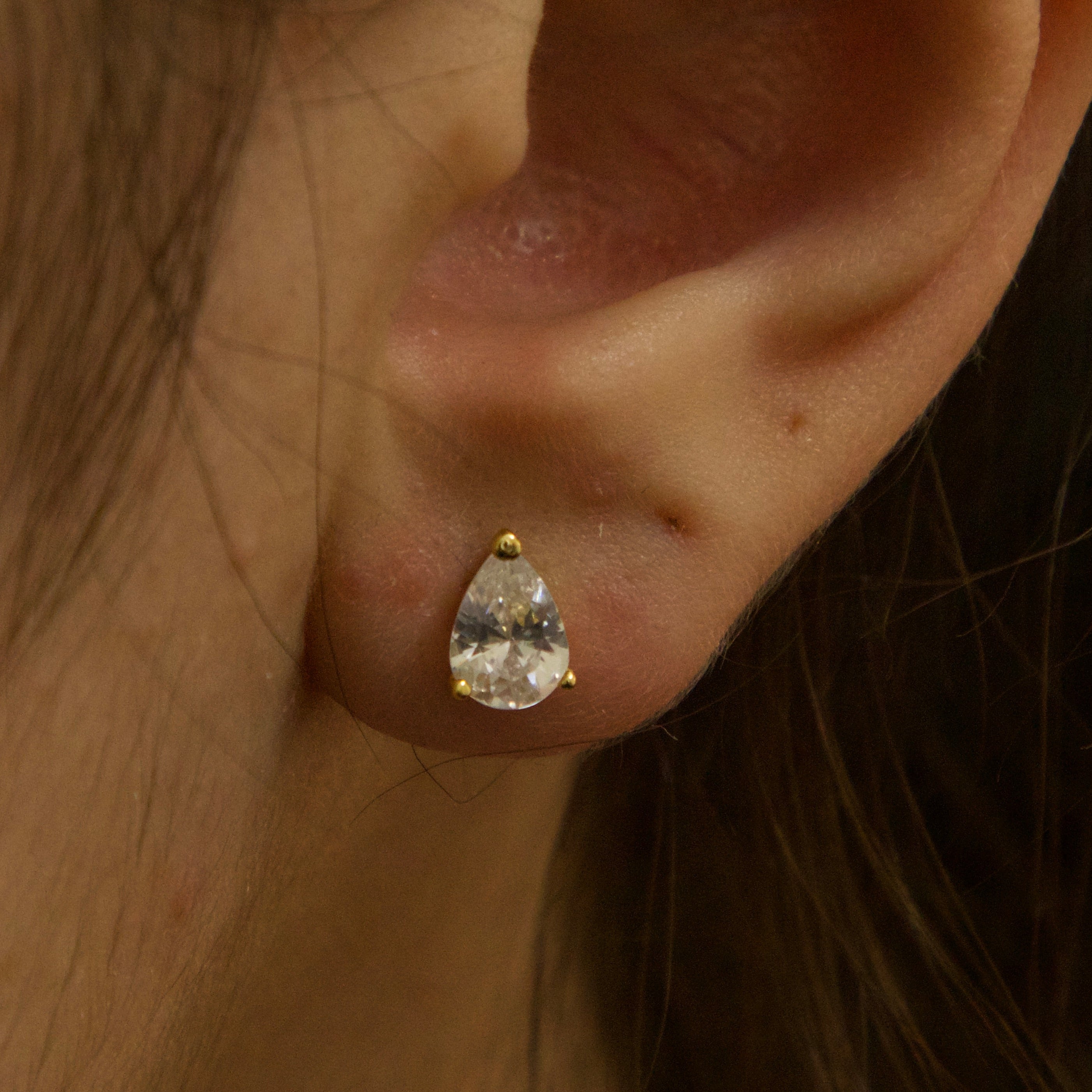 Stone: Premium Grade Pear-Cut Cubic Zirconia (CZ) for diamond-like fire.