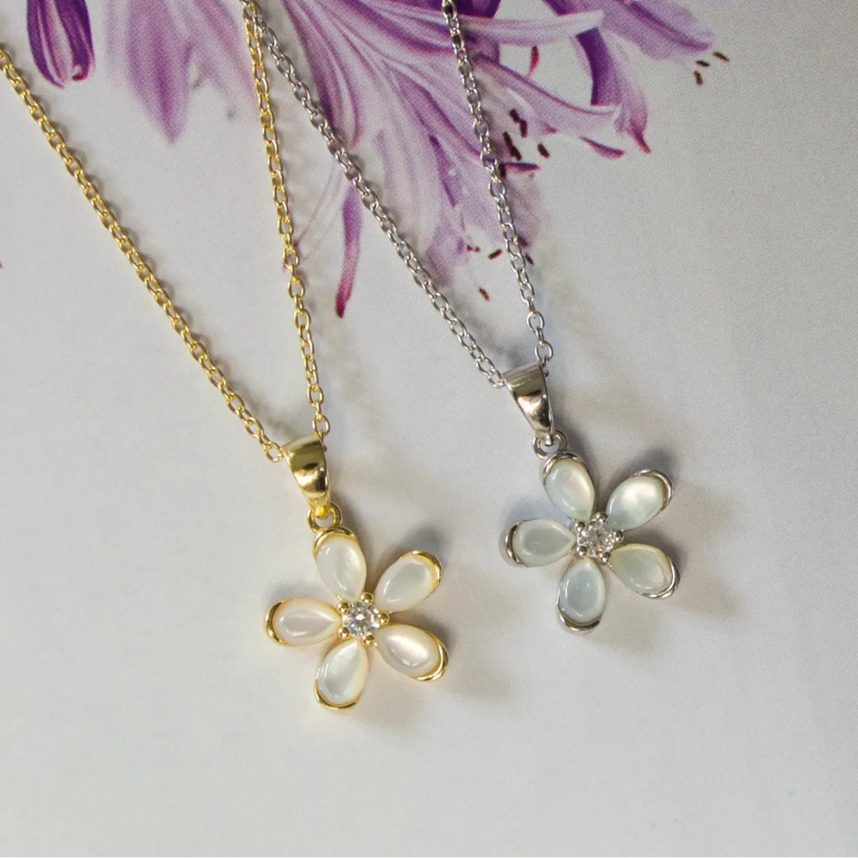 Pendant: Mother of Pearl flower with CZ center