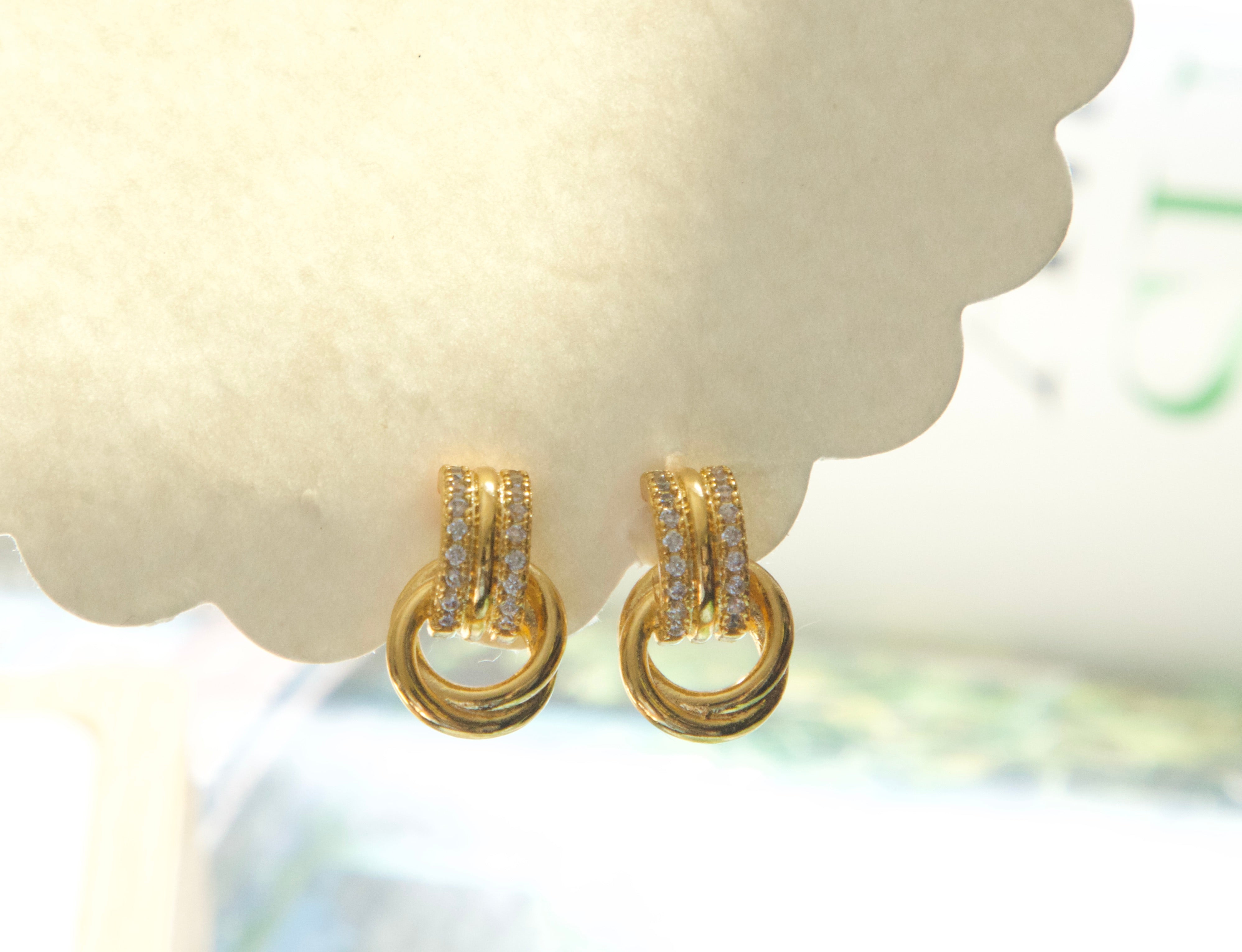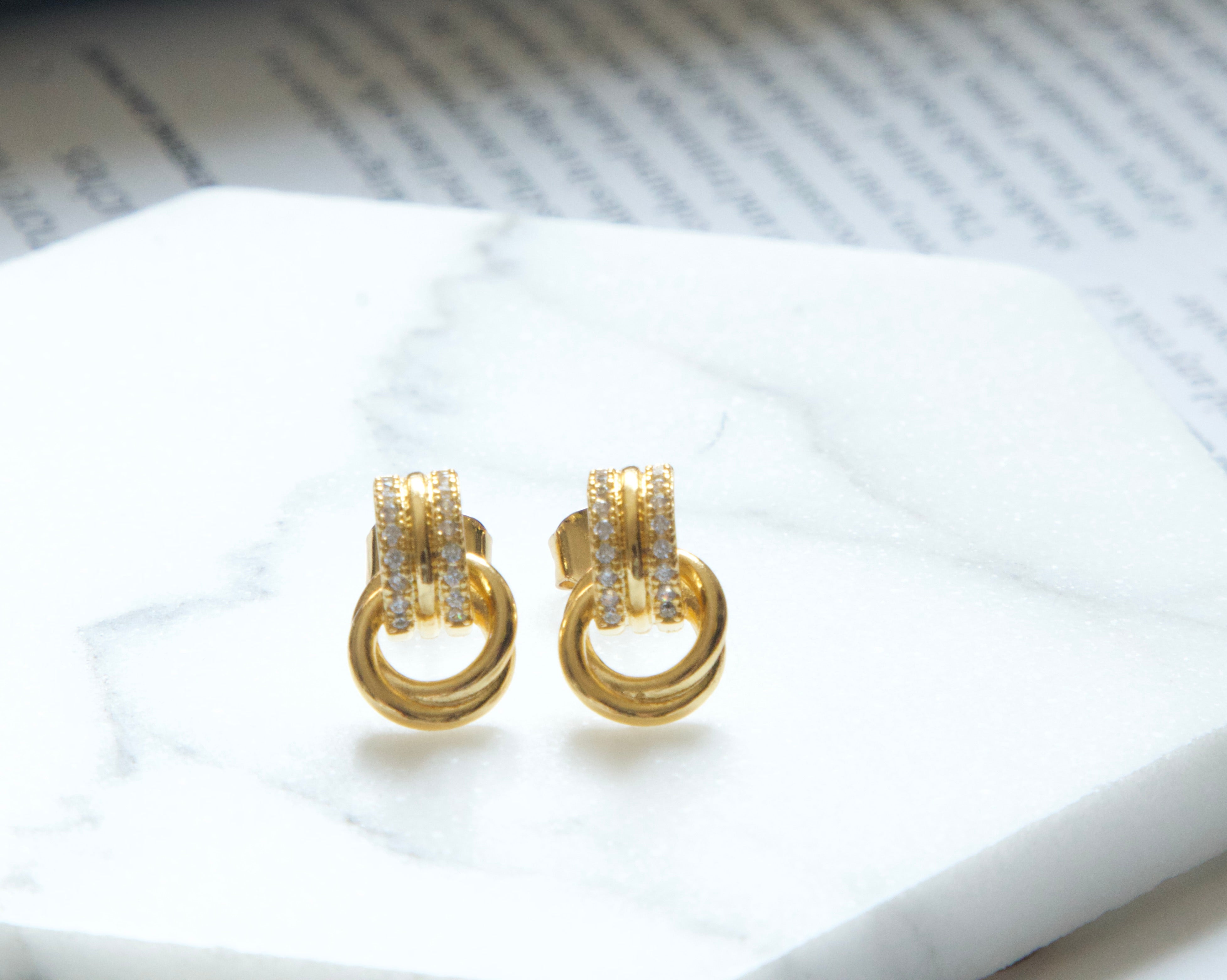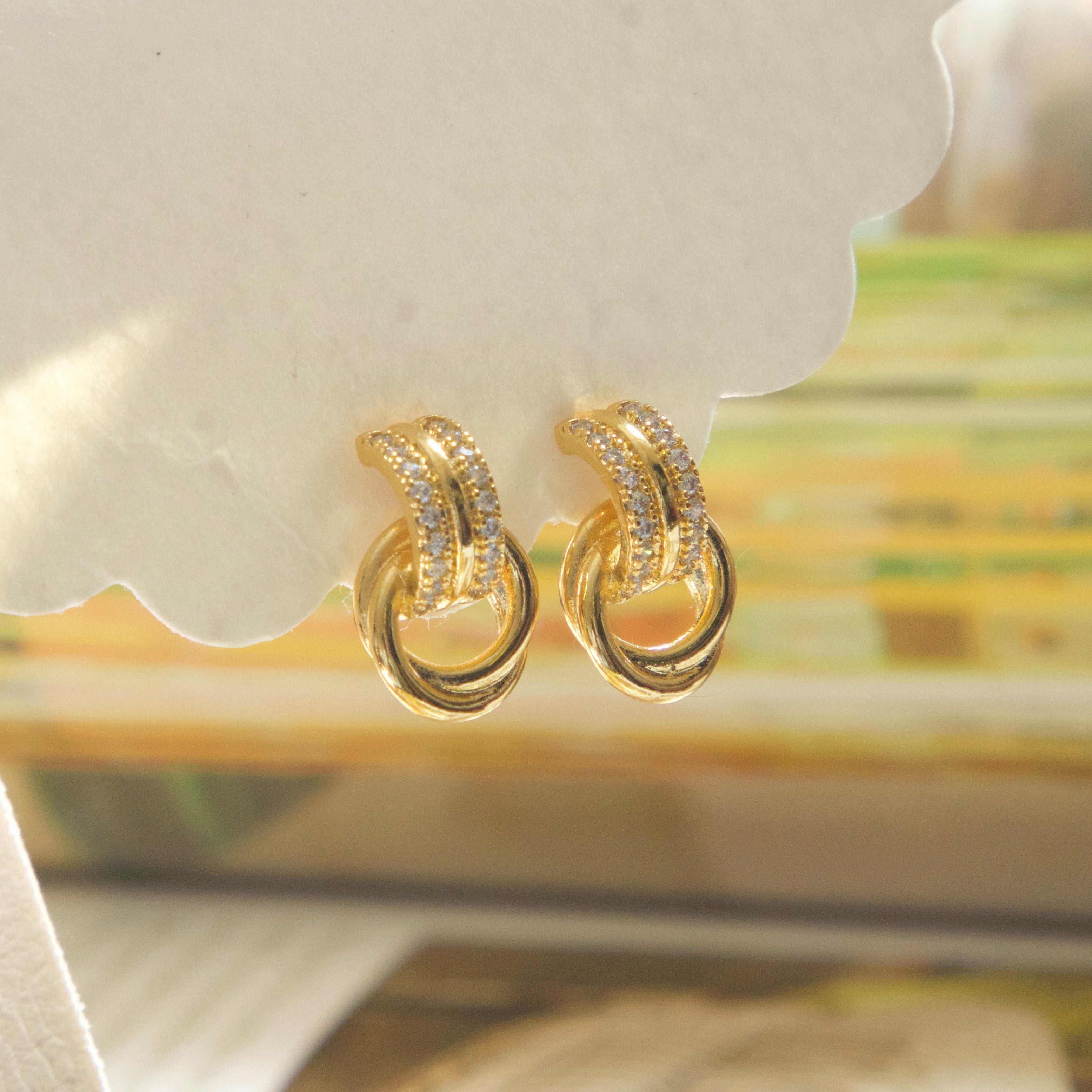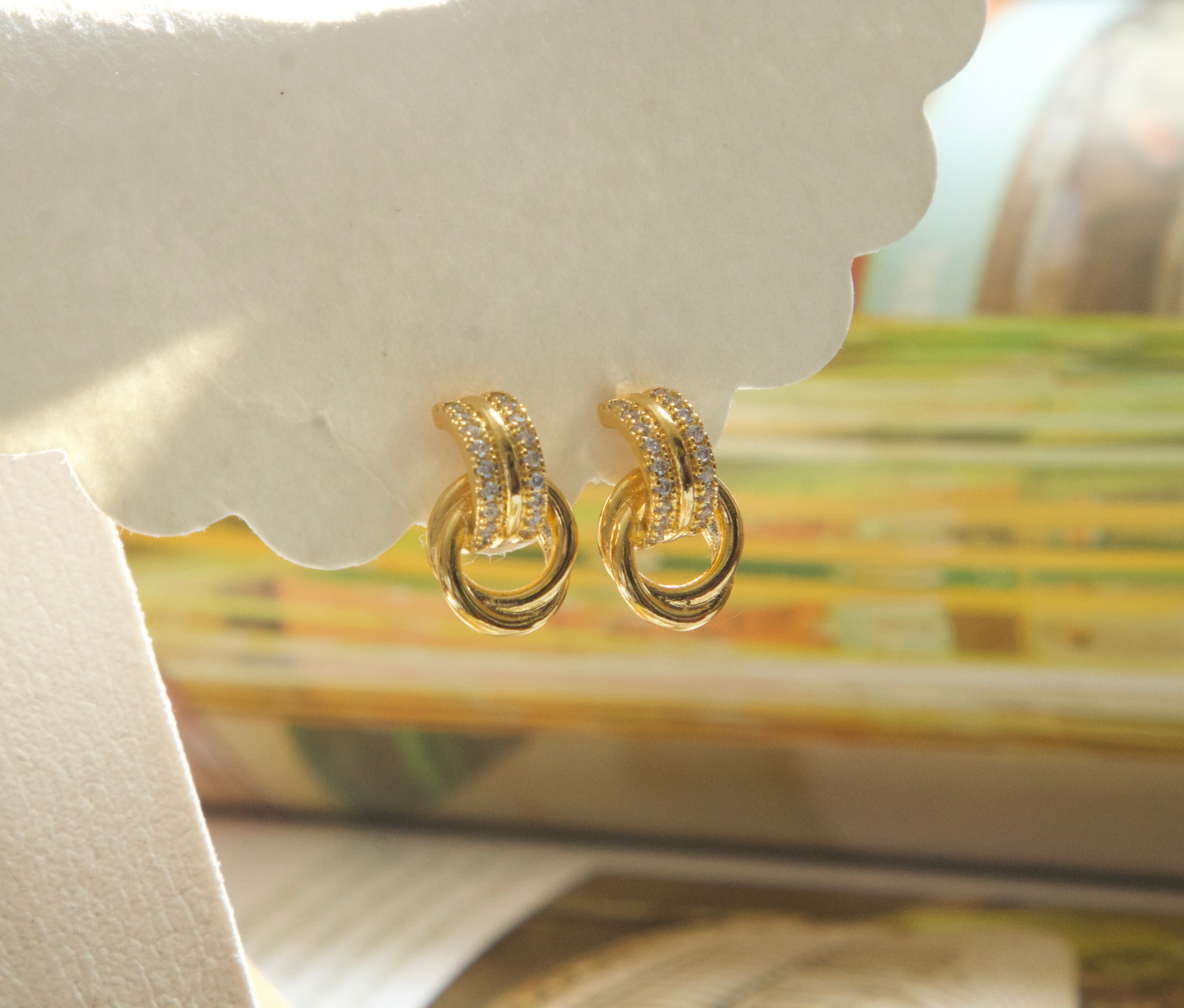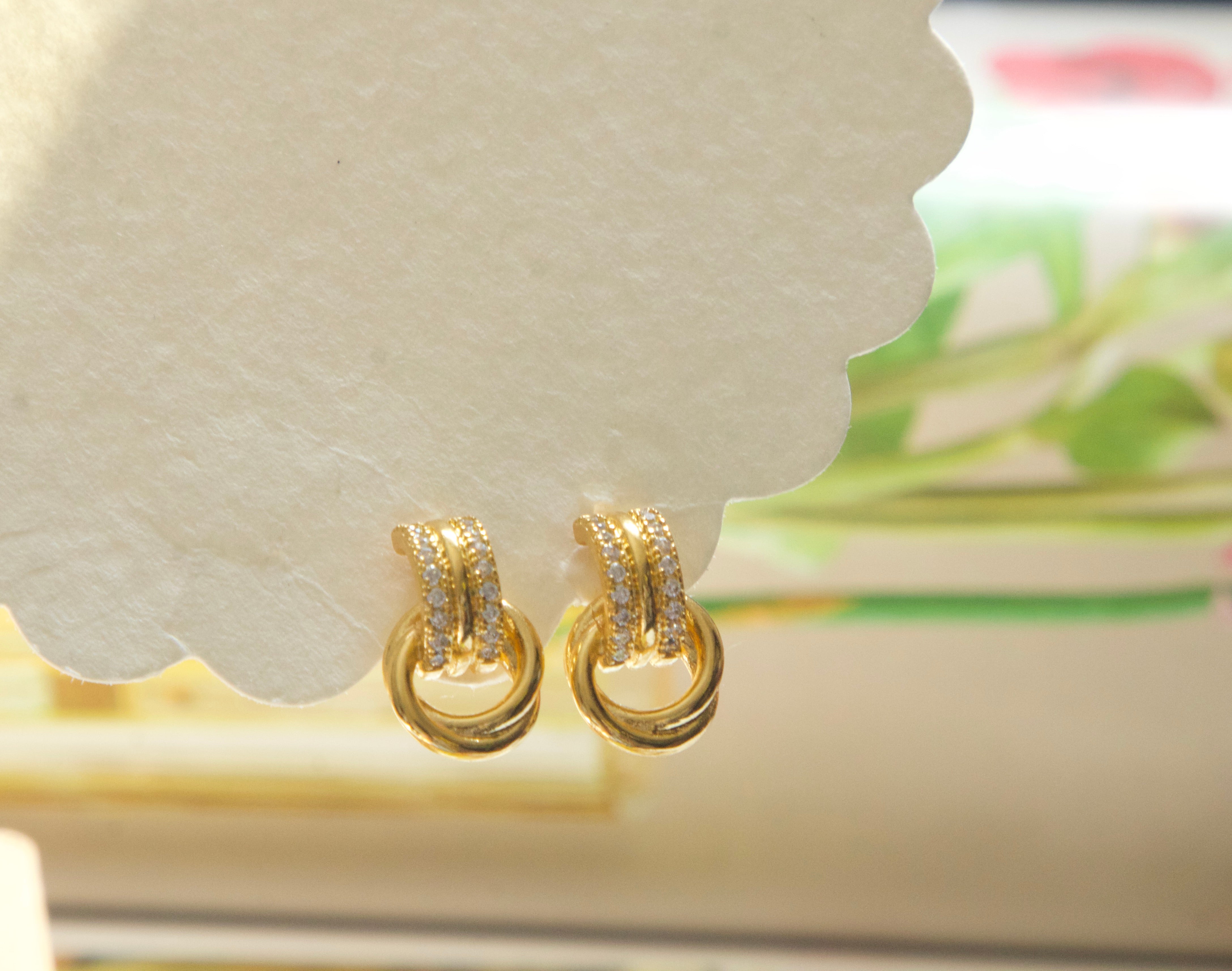 Designed with a pavé cubic zirconia huggie and a polished interlocking ring detail, these earrings create subtle movement while maintaining a compact, elegant silhouette. Lightweight and comfortable, they are ideal for sensitive ears and all-day styling.