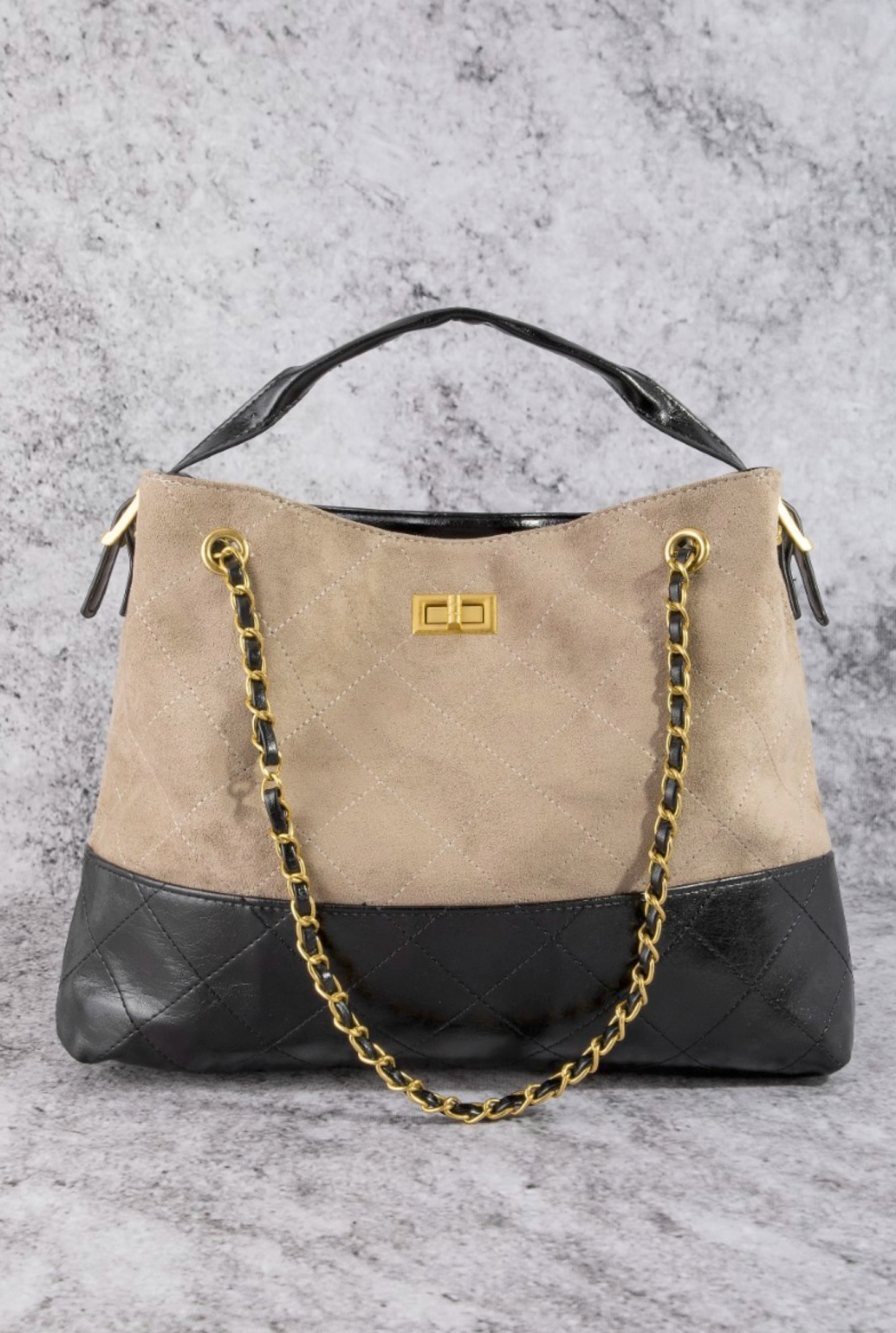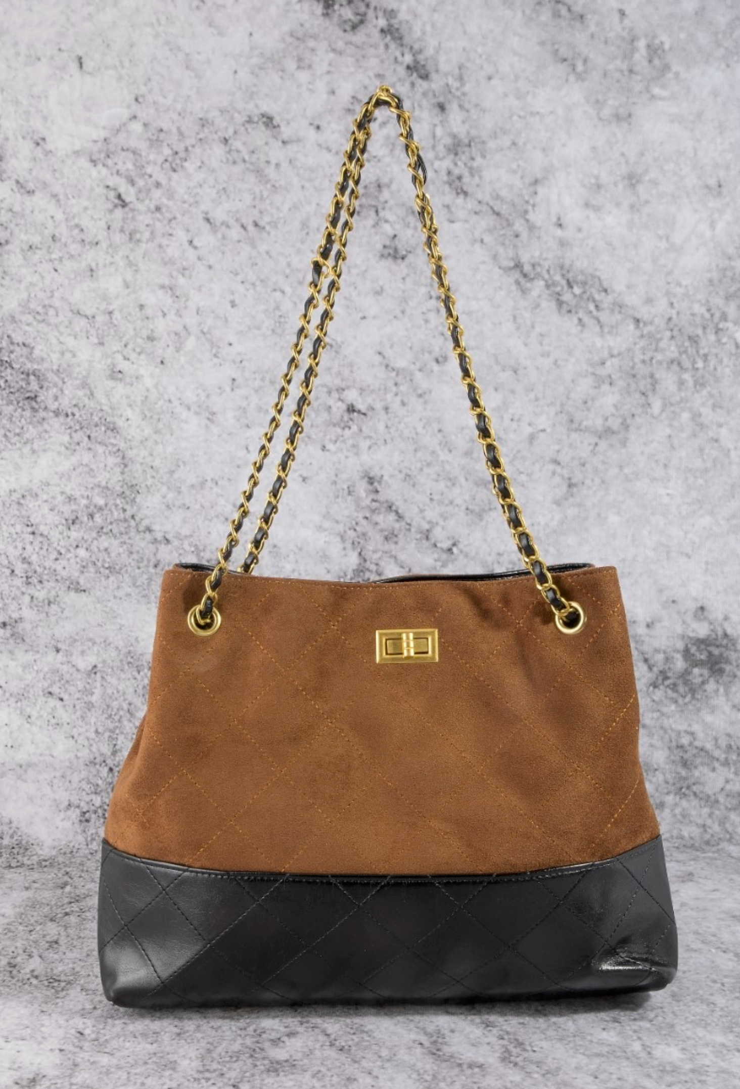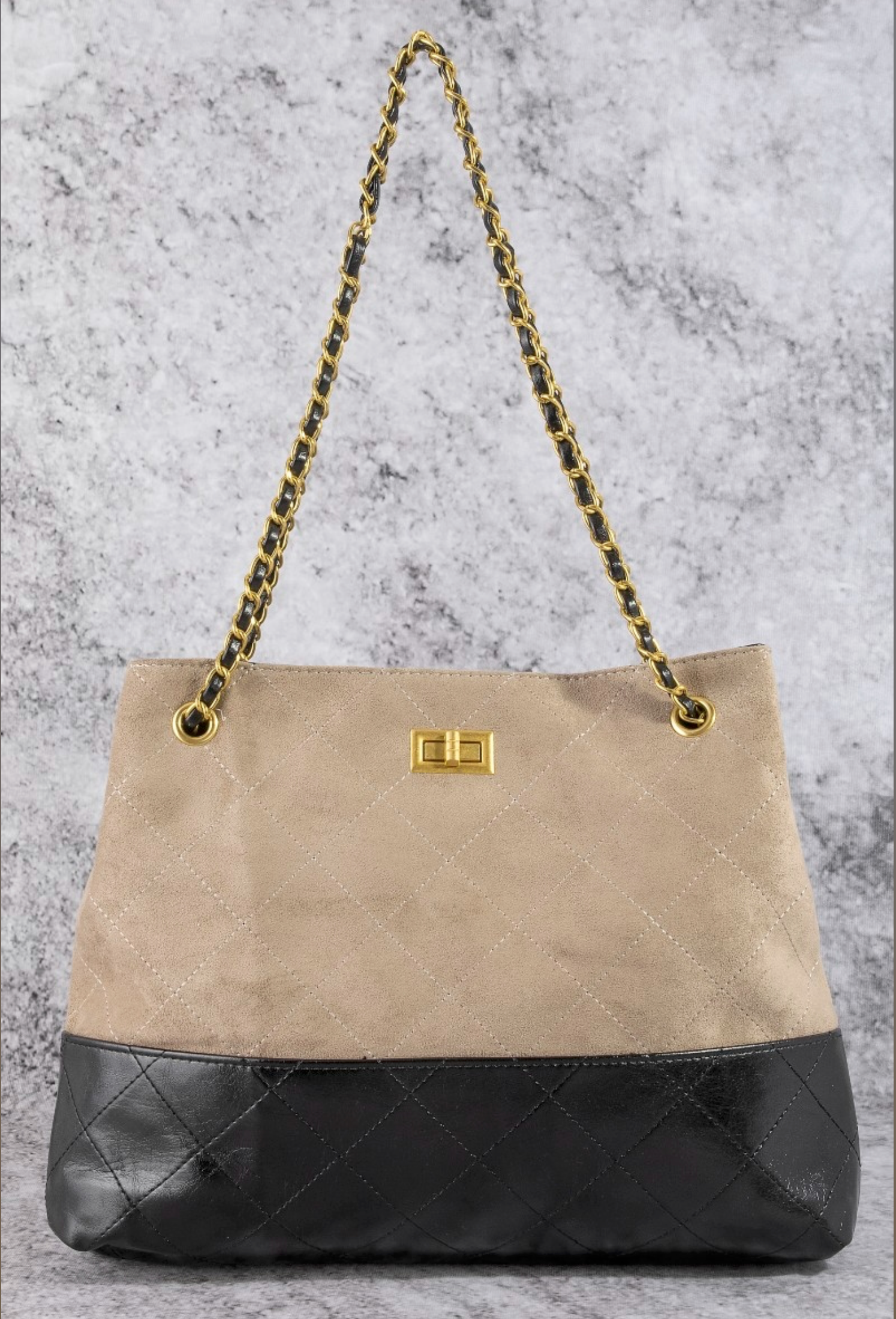 Two Tone Quilted Suede Tote Bag