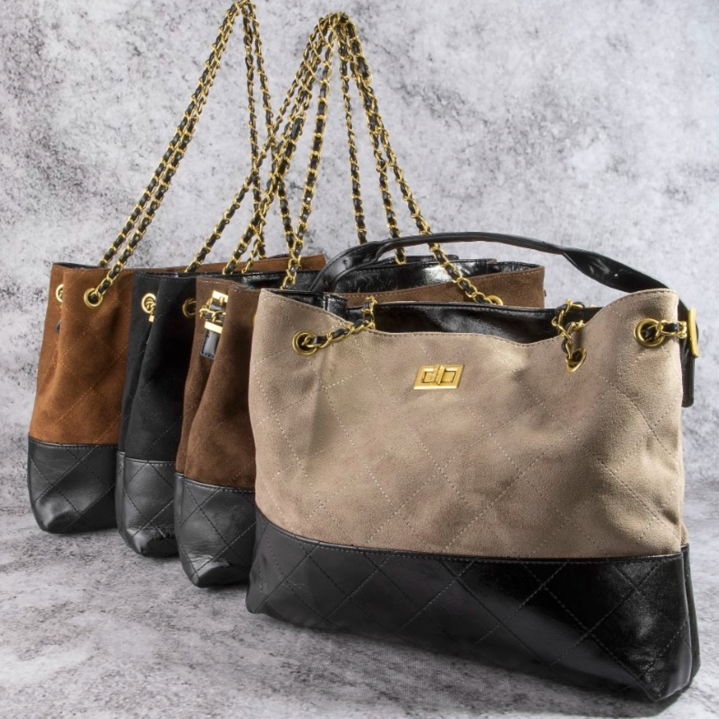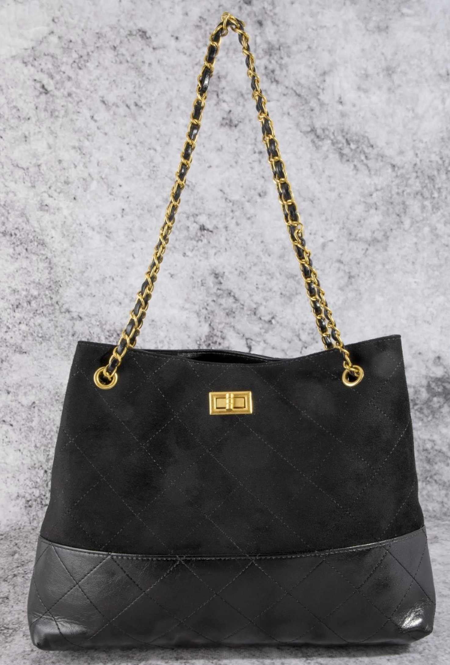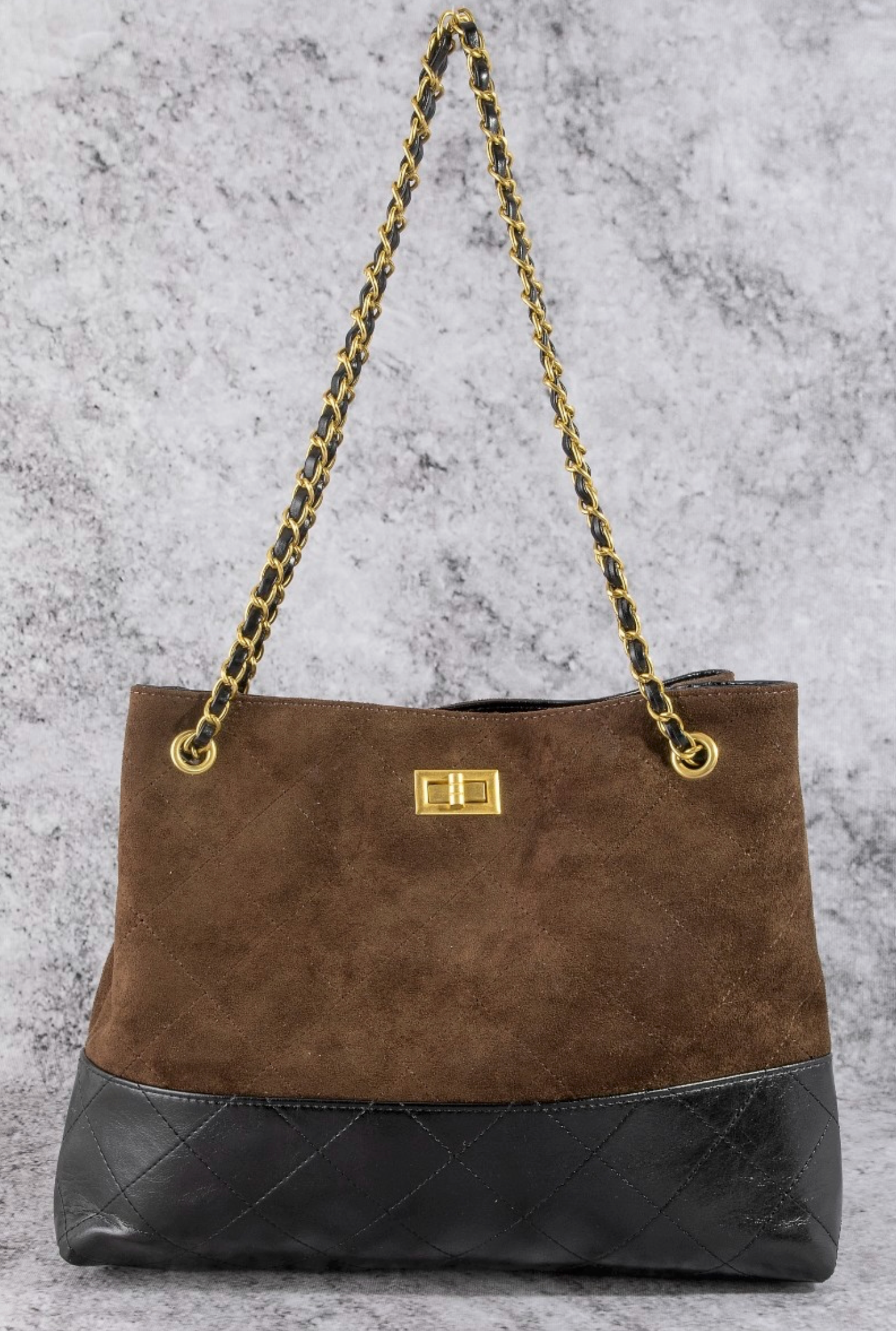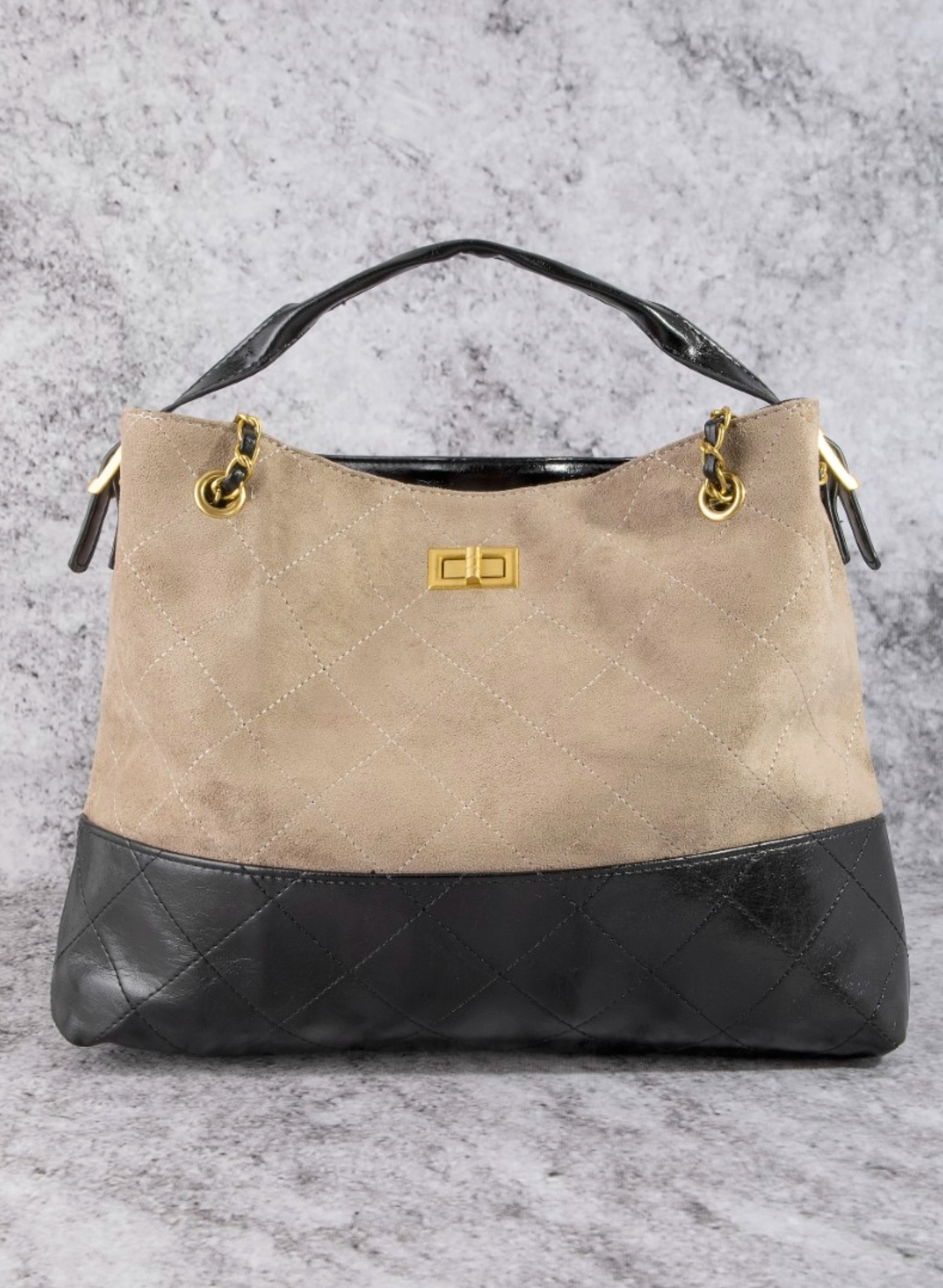 Two Tone Quilted Suede Tote Bag